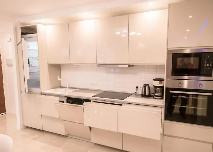 Areál má terasu i pokoje s přístrojem na přípravu kávy a čaje, místností na posezení, TV s plochou obrazovkou se satelitními kanály. Apartmán se skládá z 1 ložnic, 1 koupelen a kompletní kuchyně. Koupelny mají prostornou sprchu a samostatnou toaletu.
